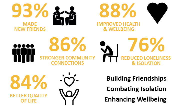 - Reduce social isolation/loneliness – inclusive and supportive environment